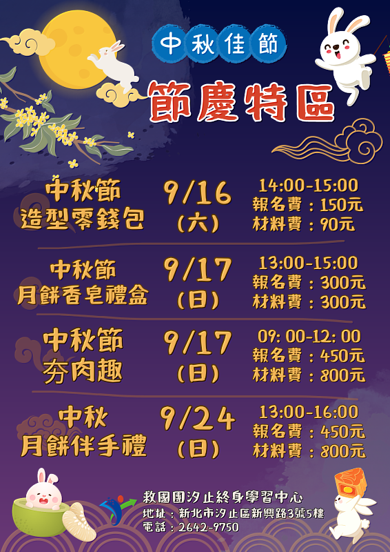 112年9.10月救國團汐止中心課程出刊! 中秋夯肉節特別企劃!