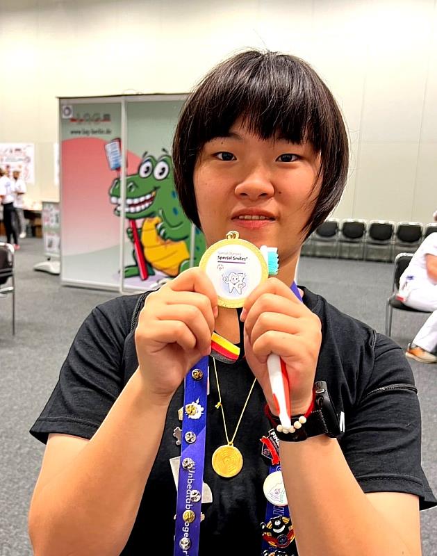 (中央社訊息服務20230802 )2023年夏季世界特殊奧運會中華台北特奧代表隊來自正修科大休閒運動管理系的同學簡伊伶,經過激烈拼鬥,一舉摘下輪鞋競速輪滑200公尺接力及輪滑300公尺雙金,消息傳回學校,全校師生與有榮焉。