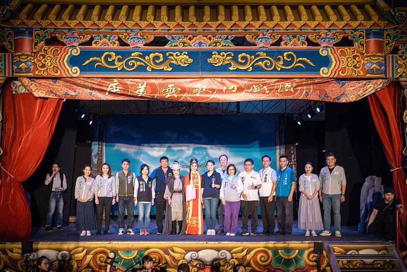 高市長表示,市府重視藝文教育,風城藝術節自7月1日開跑後,深受市民朋友喜愛,吸引上千名民眾到場觀賞,今日第3場由唐美雲歌仔戲團帶來國寶級演出。高市長說,今天早上原本還下著陣雨,在天后宮媽祖保佑下,下午就出了太陽,讓大小朋友在徐徐涼風的夜晚中,一同欣賞這部浪漫傳奇故事,共度美好週末夜晚。