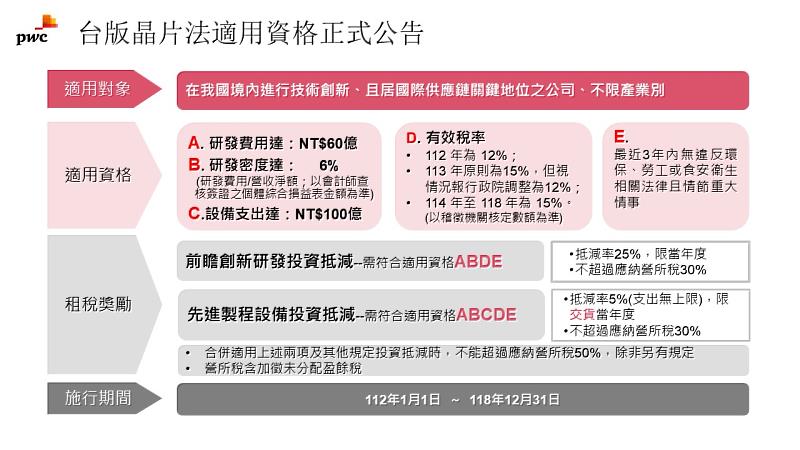 台版晶片法適用資格正式公告 資誠提醒三要點