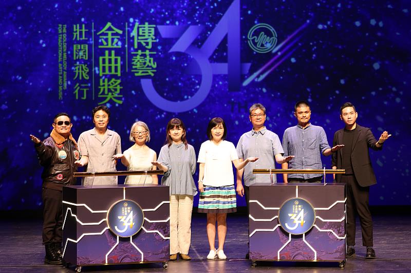 (中央社訊息服務20230808 17:51:34)眾所矚目的第34屆傳藝金曲獎頒獎典禮,即將於10月7日隆重登場。今(8)日文化部所屬國立傳統藝術中心盛大舉辦入圍公布記者會,由總召集人暨音樂類召集人吳榮順、戲曲類召集人紀慧玲,共同公布本屆入圍名單,文化部政務次長李靜慧揭曉今年度「特別獎」由已故歌仔戲藝師陳美雲及已故排灣族古調教育家查馬克·法拉屋樂獲得。而本屆宣傳大使許效舜化身為太空飛行領航員,與頒獎典禮總導演兼策展人汪兆謙、視覺總監顏伯駿一同登臺亮相,搶先預告,今年頒獎典禮將會以「壯闊飛行──Fly High」為主題,打造一場魔幻的感官饗宴。