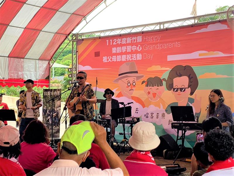 新竹縣政府教育局特別把時下最夯的追星文化搬到現場,邀請打幫你樂團炒熱現場氣氛,樂團主唱為竹東樂齡學習優質中心的講師劉榮昌老師,他演唱多首精彩客家歌曲,讓現場不分老幼,一同享受美好的演唱會時光。