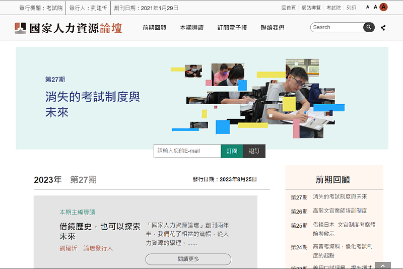 借鏡歷史再思未來 考試院《國家人力資源論壇》第27期出刊
