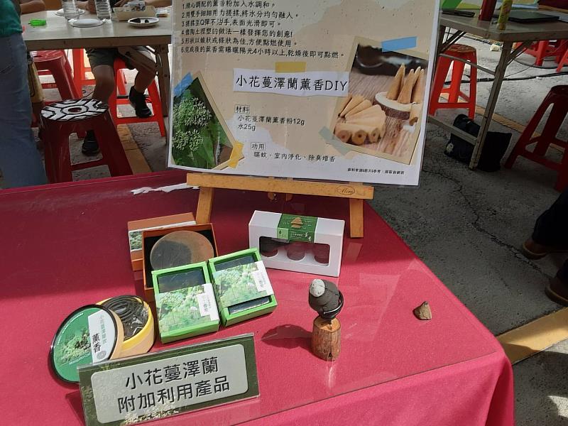 小花蔓澤蘭,也能發揮多元利用價值,林業保育署透過學術單位及產業團體的研究與開發,將小花蔓澤蘭製成環保酵素,使用在各類居家清潔用品,同時也是植物染的天然染料,可運用各式素材製作特殊花紋的小方巾或飾品。將小花蔓澤蘭炭化之後,結合天然資材,可製成「小花蔓澤蘭炭」薰香及炭皂;另加熱提煉小花蔓澤蘭醋液,可做為防蚊噴液、土壤改良和植物病蟲害防治等用途。除蔓不僅能保護生態環境,也帶來綠色循環經濟之附加價值;相關產品可於花蓮池南國家森林遊樂區、大農大富平地森林園區、富里鄉農會販賣部及馥茶堂選購,或透過「木酢達人」網站訂購。