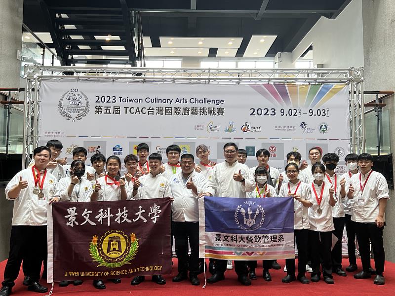 (中央社訊息服務20230905 12:02:49) 2023TCAC為全台灣唯一由世界廚師協會認證的廚藝競賽,邀請全台灣優秀人才及學生前往參與此盛大賽事,現場共計14個國家的專業評審包括台灣、香港、澳門、德國、汶萊、澳洲、新加坡、斯里蘭卡、瑞士、馬來西亞、美國、英國韓國、加拿大等共37人。參賽選手共計超過250人與團隊,景文科大餐飲管理系榮獲3全場最高分2金11銀22銅4佳作。