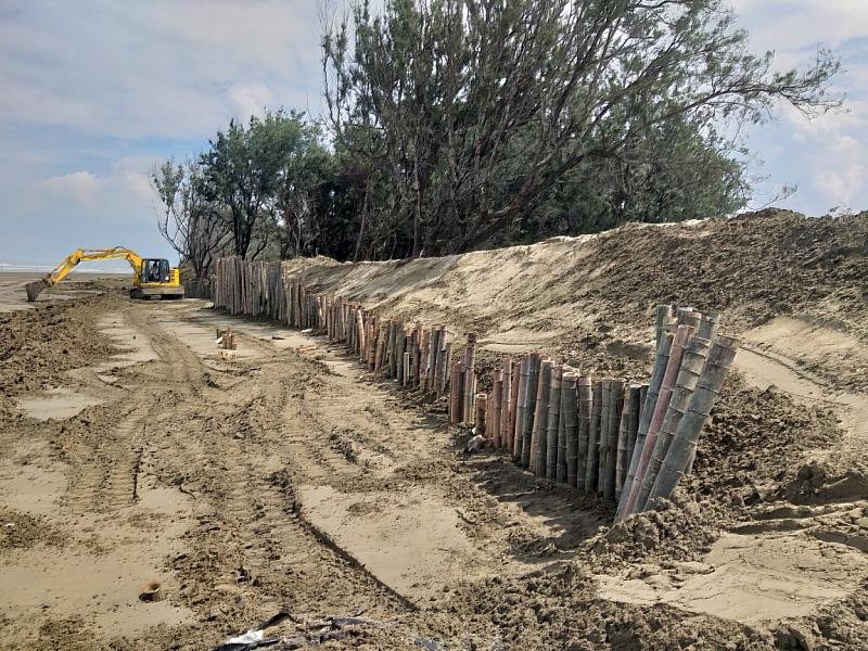 林業保育署嘉義分署是專責造林的機關,在保安林經營上常以營造複層林相,強化保安林抵擋風砂、抗鹽害及生態保育等功能,為了維護北門雙春保安林及利於日後復育造林,在杜蘇芮颱風造成保安林破口後,嘉義分署即緊急回填土砂,以保護林木根部土壤流失,但翌日即遭大浪沖毀,近期再於現地前後打設定砂木樁、竹柵及回填625包約1000公噸的太空包土砂,暫時渡過8月31日一年二次最大潮的危機,不料9月2日潮水溢流改自北側湧入,漫流沖刷保安林地。