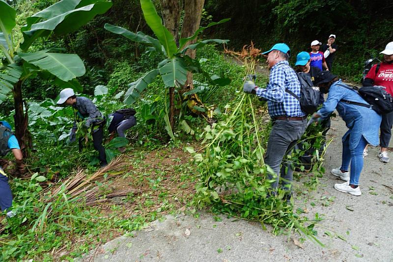 (中央社訊息服務20230905 16:33:02)農業部訂定每年9月第1個週六為小花蔓澤蘭全國防治日,林業及自然保育署屏東分署與屏東縣來義鄉公所、屏東縣來義鄉古樓國小攜手在崑崙坳古道共同除蔓,國小老師學生、古樓社區發展協會與中興社區發展協會等在地居民及高雄健身工廠員工,不畏蘇拉颱風及海葵颱風影響,仍踴躍響應,參與總人數約150人,共拔除285公斤小花蔓澤蘭及香澤蘭植體。