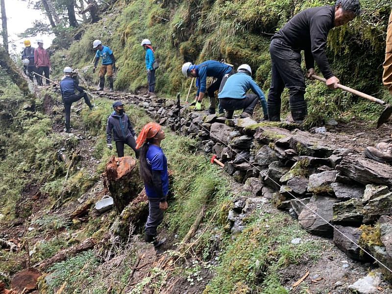 林業保育署臺東分署表示,嘉明湖手作步道工作假期是該分署與臺灣千里步道協會長期合作,透過招募來自各地的志工,運用最簡單的工具,以就地取材、不破壞生態的概念,融合步道環境特性,來進行步道修復工作。手作步道工作假期更配合「一人一公斤,為嘉明湖國家步道永續而揹」活動,運用熱心山友協助揹至步道沿線的土石,作為步道修復的材料。為期五天四夜的工作假期,將針對嘉明湖步道沖蝕溝、積水、崩塌處及坡度過陡等問題進行改善;活動最後一天亦特別安排前往長濱部落,體驗部落的自然及人文活動,來一趟東海岸阿美族部落文化深度之旅。