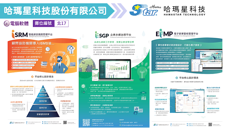 哈瑪星科技是一間以人為本發展資訊科技服務的企業,因應資安和ESG趨勢浪潮之下,積極協助政府機關、學校和企業等組織實現雙軸轉型,邁向數位革新和綠色永續,提供可靠支援。在展會上,我們展示了引人注目的產品,特別是在智慧應用和資安主題論壇上介紹了「ESGP企業永續管理平台」和「ISRM智能資安風險管理平台」。同時,我們的展攤歡迎各界專業人士參觀,互相交流並參加互動活動,有機會抽取星巴克飲料券、7-11商品卡和文創小禮品。