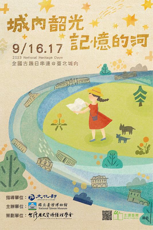 (中央社訊息服務20230914 09:59:03)國立臺灣博物館和臺灣歷史資源經理學會共同策劃,以「城內韶光─記憶的河」為主題,邀集臺北舊城區內的古蹟及歷史建築場域,共同辦理2023全國古蹟日活動。
