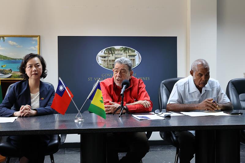 駐聖文森國范大使惠君本(112)年9月12日出席聖國「全國次級道路整修工程」(NRRP)合約簽署儀式,聖國總理龔薩福(Ralph Gonsalves)、副總理兼工程部長丹尼爾(Montgomery Daniel)、工程部次長Lavern Grant、專案計畫協調人貝利(Dr. Brent Bailey)均到場出席,承包工程的團隊為台灣廠商「海外工程公司」(OECC),儀式邀請聖國新聞局及國家電台到場採訪。