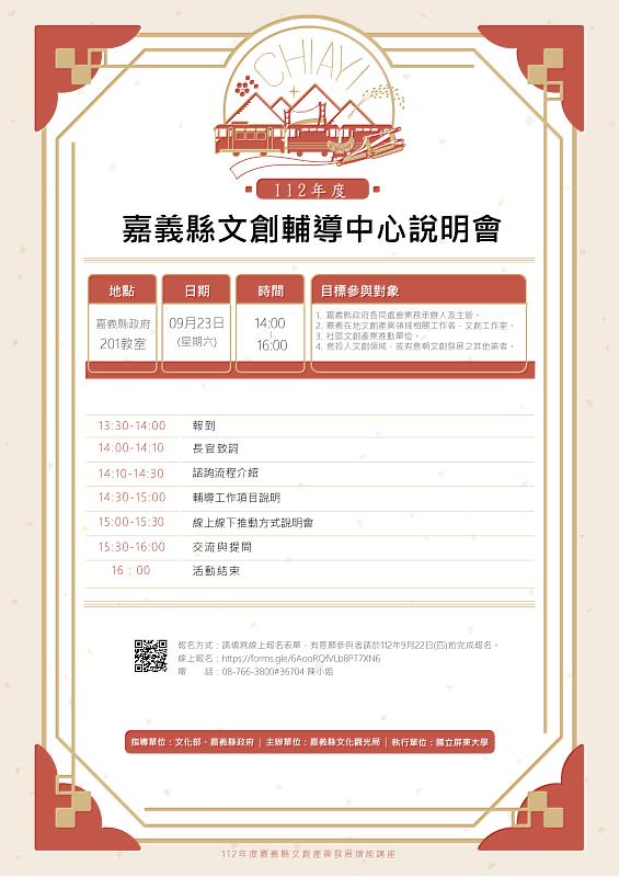 服務再升級 嘉義縣9月23日辦文創輔導中心說明會
