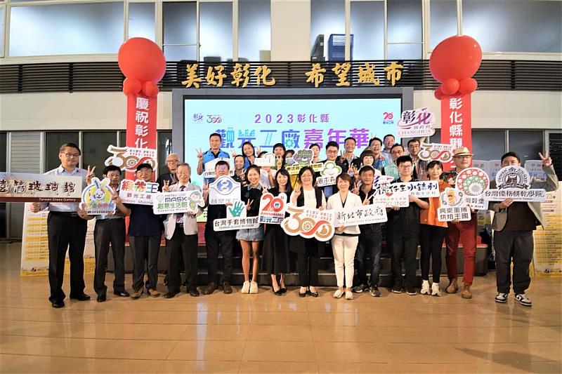 (中央社訊息服務20230919 18:18:03)彰化縣政府今(19)日上午於縣府中庭舉辦「彰化縣觀光工廠嘉年華暨行銷計畫」啟動記者會,彰化縣長王惠美、經濟部中部辦公室科長陳幸宜、新北市政府經發局主任秘書陳玫秀等貴賓與會,宣告9月23、24日在田尾公路花園舉辦「彰化縣觀光工廠嘉年華活動」,現場設置市集及表演活動,活動期間將發放可愛的氣球及消暑的泉芳枝仔冰,數量有限送完為止。王縣長表示,彰化縣有15家觀光工廠數量名列全國第四名,感謝經濟部的支持及輔導下,在今年經濟部舉辦2023優良觀光工廠評選,全國165家觀光工廠,入選計有7家,彰化縣就有台灣優格餅乾學院、華新MASK創意生活館及緞帶王觀光工廠等3家入選,為全國最多,今年也是彰化建縣300年,感謝觀光旅遊協會及各觀光工廠配合彰化建縣300年,用自家產品號召更多人一起認識彰化、認識觀光工廠。自9月23日起有「建縣300彰化博覽會」系列慶祝活動,歡迎全國民眾來彰化逛觀光工廠、看表演、吃美食還可抽大獎。