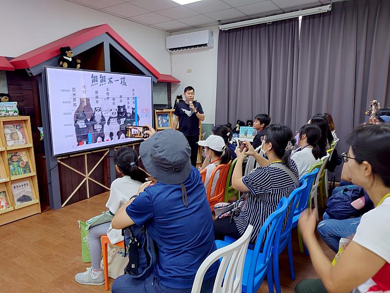 當日由任美華老師從玉里車站進行小鎮導覽,途經東興旅社、洗衣亭、圓環噴池、文英手工皂、廣聖堂等老街各歷史文創點,路線抵達臺灣黑熊教育館後,由臺灣黑熊保育協會的黑熊老師介紹黑熊與保育,教育館致力於推廣臺灣黑熊的保育知識與文化價值,通過豐富多彩的展覽和文化活動,讓大眾能更明白保護臺灣瀕臨絕種黑熊的重要性。接著任美華老師分享張友漁《我的同學是一隻熊》文本,作品描繪了一個山村少年與臺灣黑熊之間深厚的情誼,通過兒童的語言細緻地描繪了黑熊保育的重要意義,並呈現了生命成長的真摯感動。本活動配合國家語言發展,也進行布農族歌曲教唱及台語謎語詢答遊戲,透過遊戲,進一步認識玉里公學校(舊玉里國小)的特色與歷史。