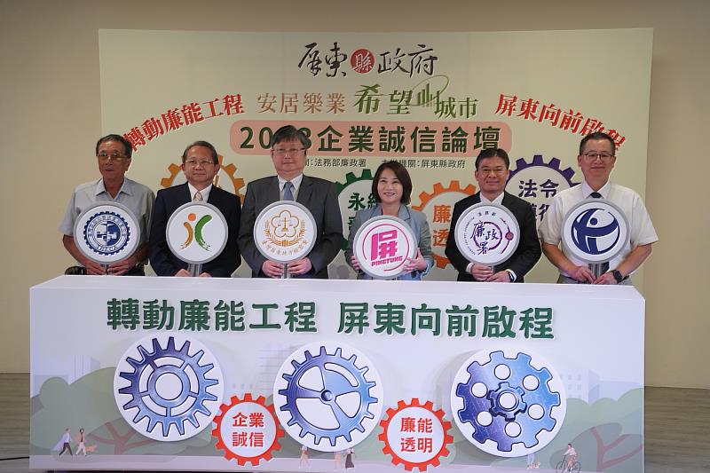 廉政論壇由屏東縣長周春米主持,並邀請臺灣屏東地方檢察署檢察長陳盈錦、行政院公共工程委員會企劃處副處長胡培中、法務部廉政署防貪組組長劉耀中、台灣透明組織常務理事楊永年、臺灣區綜合營造業同業公會屏東辦事處處長陳邦彥及地方鄉鎮長等,共同參與「轉動廉能 向前啟程」的儀式。