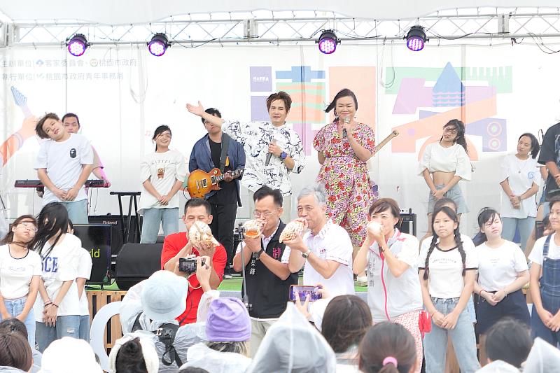 世客博亮點活動「潮客音樂會」今以「桃園恁青」為題,雖遇陣陣雨勢突襲,但仍一絲不減台下觀眾的熱情。活動由羅文裕與許立志以歕嘟雄厚的聲響揭序,接著由金曲歌手吉那罐子、搖滾樂團JHALL及超夯男團FEniX輪番演出,並將桃青之星參賽者及多所學校社團的青年學子加入展演陣容,表演陣勢龐大,展現出客家文化交流、世代薪傳的象徵,讓大家見證台灣客家後生的活力!歡迎大家把握最後兩週展期參觀,更多資訊可至世客博網站(https://www.hakkaexpo2023.tw/homePage)及臉書查詢。