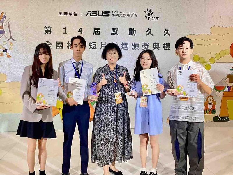 「感動久久」致力於打造影像創作友善平台,由華碩文教基金會與公共電視共同籌辦,深耕校園至今邁入第14年,今年頒獎典禮邀請到4位資深導演賀照緹、傅天余、許承傑、陳映之與演員劉品言為學生創作者評選。在MV、動畫、紀錄片及劇情式影像創作為主的參賽作品中,世新新聞系是唯一端出新聞專題作品參賽的團隊,去年就曾以單一作品拿下2座獎項,今年再下一城,以3件作品共獲得3座獎項,實屬難能可貴。