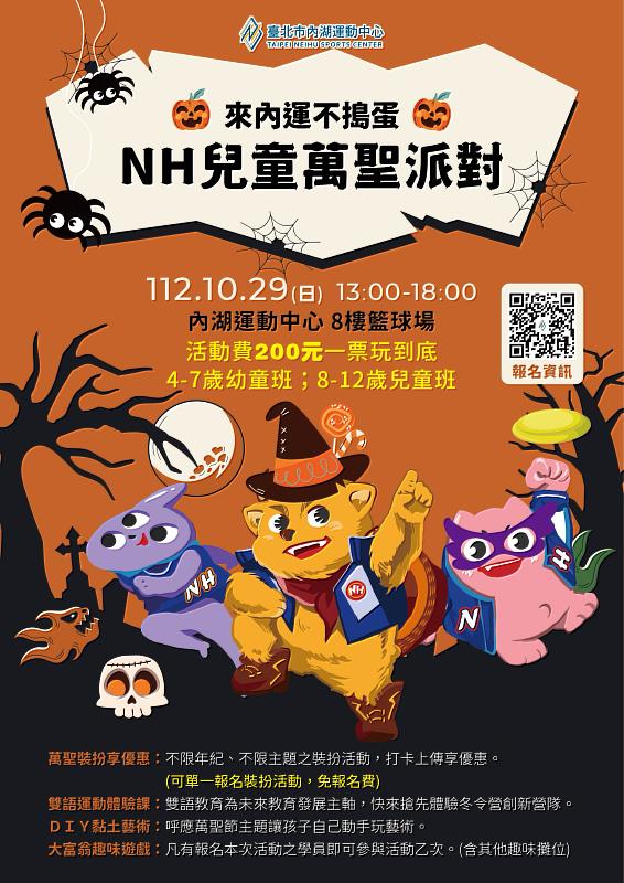 內湖運動中心邀請大家10/29日一同歡慶萬聖節NH萬聖派對『來內運不搗蛋』