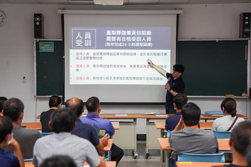 臺東縣政府今日召開『鳳梨釋迦品質管理說明會』,針對12/8陸方公布通過註冊的37家包裝廠,說明後續包裝廠查核重點及外銷箱張貼標章的規範,縣長饒慶鈴呼籲各包裝廠業者務必遵守「鳳梨釋迦品質管理規範」,共同維護得來不易再次登「陸」的成果,縣府及東大團隊後續會嚴謹查核,確保果實品質。