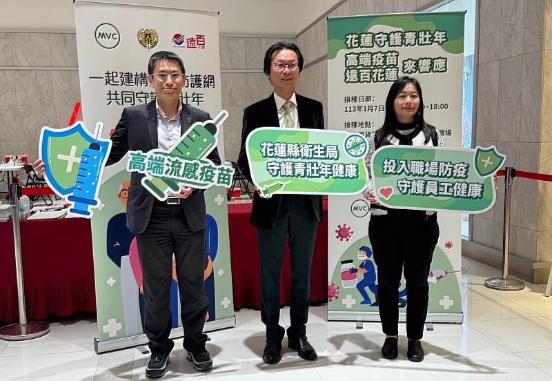 2024年1月7日(日)花蓮縣衛生局、高端疫苗、遠百花蓮共同舉辦企業施打流感疫苗活動,提供19-49歲青壯年非公費民眾,在遠東百貨花蓮店免費接種流感疫苗,共築健康防護網。花蓮縣衛生局認為,19-49歲青壯年為家中、社會重要支柱,但在政府預算有限的情況下,還未能將此族群納入公費疫苗,實屬可惜;而流感疫情持續嚴峻,農曆新春假期將近,親友團聚活動恐成病毒傳播媒介,致使感染風險攀升。有感於此,花蓮縣衛生局發起流感疫苗免費接種活動,保護青壯年提升免疫力,安心過好年。高端疫苗亦期盼青壯年透過接種疫苗,遠離流感威脅,因此捐贈1,000劑流感疫苗助力花蓮縣衛生局,希望善盡企業社會責任,為地方防疫盡一份心力。同為活動響應者,遠百花蓮多數員工為青壯年族群,平日與同事工作、聚餐,無形中皆可能成為病毒傳染途徑,因此在花蓮縣衛生局與高端疫苗的支持下,推行企業施打活動,盼守護每位員工、乃至每位花蓮鄉親的健康。