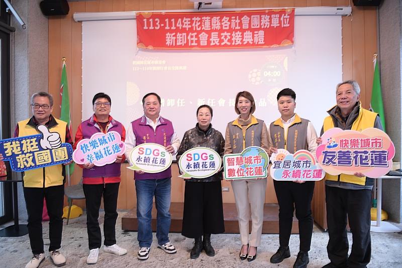 (中央社訊息服務20240129 15:00:00)花蓮市救國團於1月26日(五)假Kadda 璽賓行旅辦理113-114年新卸任會長交接典禮,歷經一屆兩年任期的辛勤付出,卸任會長李振瑋與新任會長卓馨茹一同見證了社團的新里程碑。