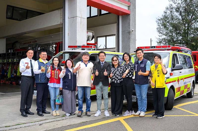 在地企業聯合捐贈2輛救護車 邱臣遠副市長:公私協力強化竹市香山救護量能