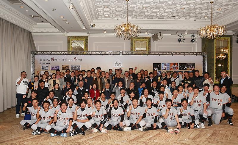 文大棒球隊60週年晚宴貴賓雲集,包括教育部政務次長張廖萬堅、教育部體育署署長鄭世忠、中華職棒聯盟秘書長楊清瓏、中華民國棒球協會副理事長趙士強、國家運動訓練中心執行長龔榮堂、台灣棒球名人堂協會秘書長鍾裕能、樂天桃猿職業棒球隊副領隊沈鈺傑等,展現文化大學棒球隊的深厚影響力與廣泛社會支持。此外,台灣運彩公司也共襄盛舉,捐贈新台幣五萬元支持棒球隊,展現對體育發展的關懷與支持。