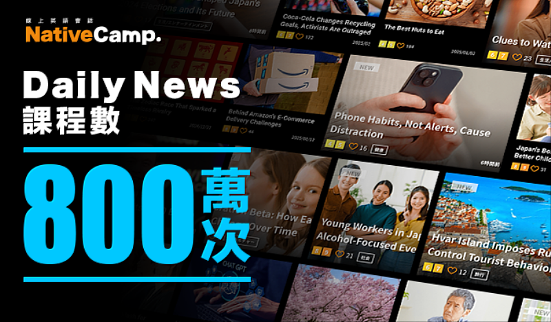 線上英語會話平台NativeCamp為全球唯一提供與真人英語會話講師進行一對一課程的月費定額服務,讓學習者隨時隨地不受限制地進行學習。其最受歡迎的原創教材「Daily News」於2025年4月累計上課次數突破800萬堂!