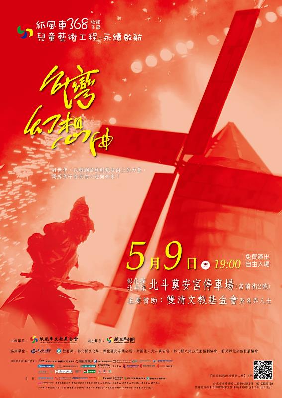 本場活動由文化部、教育部、彰化縣文化局、彰化縣北斗鎮公所、財團法人北斗奠安宮等單位協辦,更多資訊詳見紙風車劇團FB粉絲專頁。