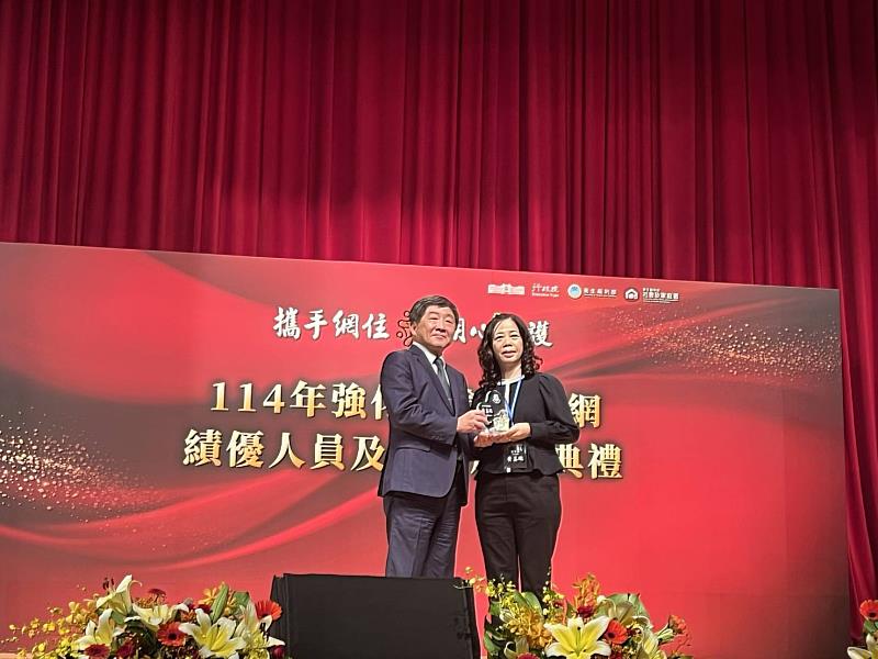 (中央社訊息服務20250728 09:39:56)衛生福利部今26日舉辦「114年度強化社會安全網績優人員及團體表揚典禮」,嘉義縣社會局3位表現優異的社工人員脫穎而出,分別為社工及成人保護科黃美旭社工督導獲「績優社工督導獎」,婦女及性別平等科蔡佳螢社工與身障福利科鄭育成社工雙雙榮獲「績優人員獎」,展現嘉義縣推動社安網的專業實力與成果。