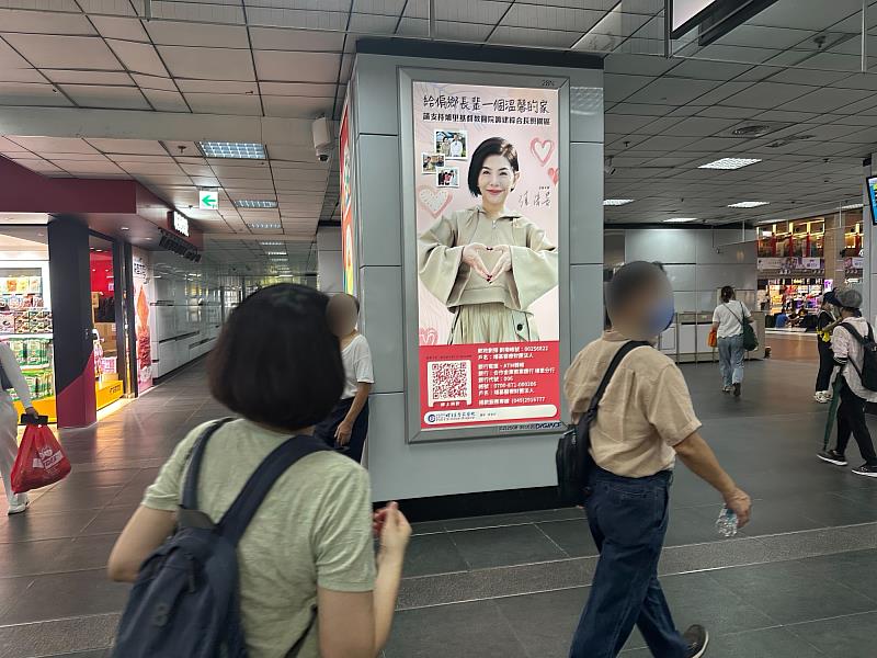 在台北車站一樓的高人潮轉乘通道,一幅溫暖的公益燈箱吸引來往旅客目光。畫面中央,知名藝人張清芳身為公益大使,雙手比心,身旁寫著:「給偏鄉長輩一個溫馨的家」——這是埔里基督教醫院正在推動的「長照醫療綜合園區建設計畫」,其公益廣告由台灣摩菲爾創辦人謝卓燁女士贊助刊登,盼望透過戶外媒體,擴大社會對偏鄉長照需求的關注。