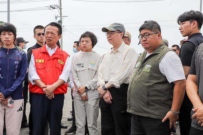 嘉義縣接連遭受風水災,卓榮泰再度南下勘災,立委蔡易餘、張啟楷、王育敏、朴子市長吳品叡、水上鄉長林緗亭等人也都到場反映災民的心聲,以及亟需中央協助解決的治水事項。