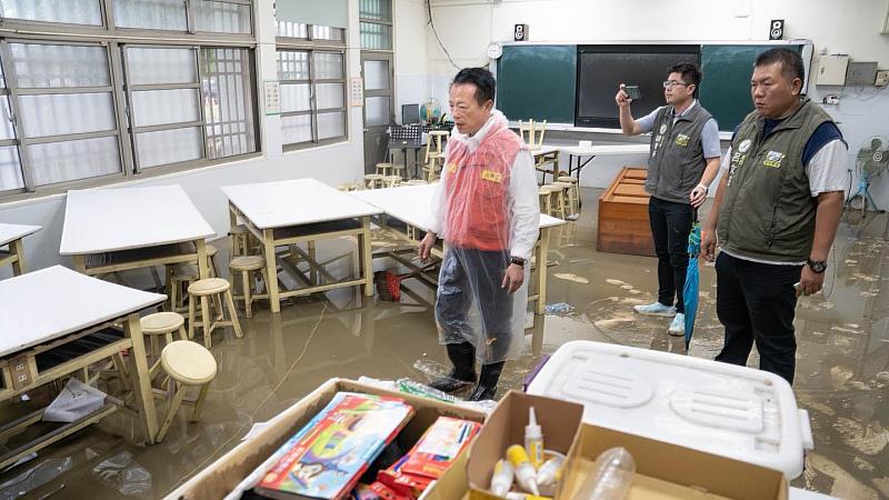 翁章梁視察竹村國小淹水災情 強調全力支援 力拼開學前復原