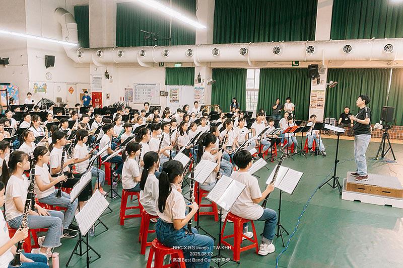 (中央社訊息服務20250802 18:02:53)今天,高雄迎來了一個歷史性的時刻!高雄首個國小管樂社團聯合營隊正式拉開序幕,140位小小音樂家齊聚一堂,用純真的笑容和悠揚的樂聲,譜寫出最美麗的樂章。