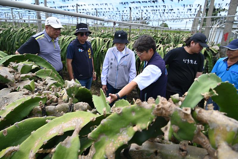 至於楊柳颱風強風豪雨導致全縣農作物普遍出現落花、落果、折枝或倒伏等災損,包括釋迦、香蕉、文旦、芭樂、紅龍果、臍橙等受創,災情非常嚴重。希望中央將台東全縣農作物納入「全品項現金救助」,其中香蕉、文旦柚、釋迦、芭樂、酪梨等主要受災作物則爭取「免現勘」,以縮短救助作業程序,協助農友儘速復耕,也請中央將颱風楊柳災後復建列入「丹娜絲災後復原條例」。