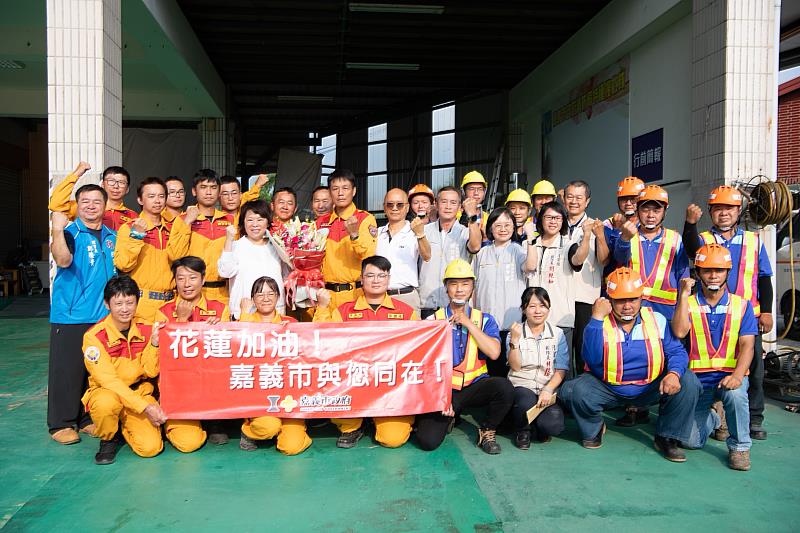 黃敏惠市長表示,花蓮在此次風災中受到重創,全體國民都感到擔憂與不捨。嘉義市不久前歷經丹娜絲風災,對花蓮人民此刻的心情感同深受,因此市府團隊跨局處,盡速盤點救災人力、物力及資源後,出動22名人員、4輛消防車輛與2架救災無人機,並由環保局支援2台山貓、2台卡車、1台高壓沖洗車與1台溝泥車及1台工作車等工程機具,協助災後搶救等工作。感謝嘉義市救援隊不畏艱險,挺進災情最為嚴峻的佛祖街、武昌街等地,展現高度專業與使命感,與全國救災力量並肩合作,守護生命安全,值得全體市民驕傲。
