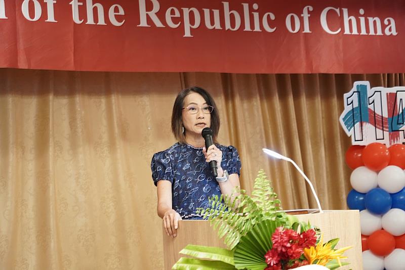 酒會在臺帛兩國國歌中揭開序幕。黎倩儀大使於致詞時表示,中華民國於114年前建國,成為亞洲第一個民主共和國,今日臺灣不僅堅守民主自由與人權價值,更以科技創新與經濟實力,為全球和平與繁榮做出貢獻,包括我國自由度亞洲排名第二、世界競爭力排名第六,並為全球第20大經濟體。