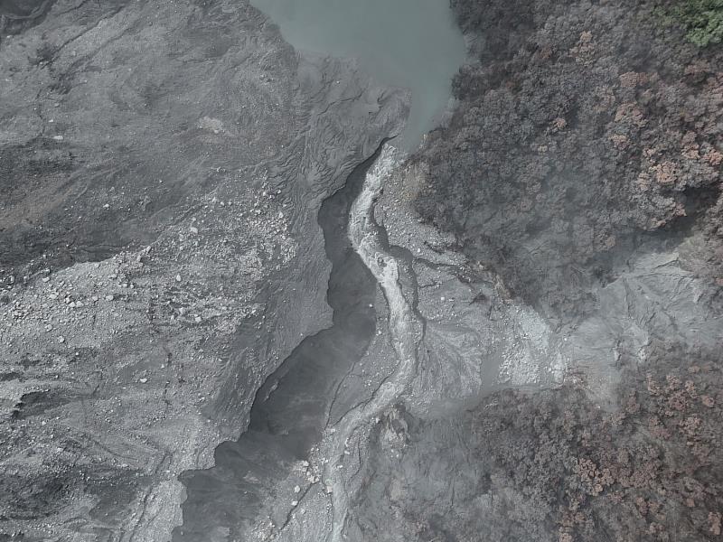 林業保育署花蓮分署表示,今日中午天氣晴朗後立即進行空拍,結果顯示新、舊堰塞湖量體已明顯縮小且持續溢流,溢流口及兩側邊坡均無崩塌或堵塞情況,下游河道水位穩定下降,整體水勢尚在可控範圍。