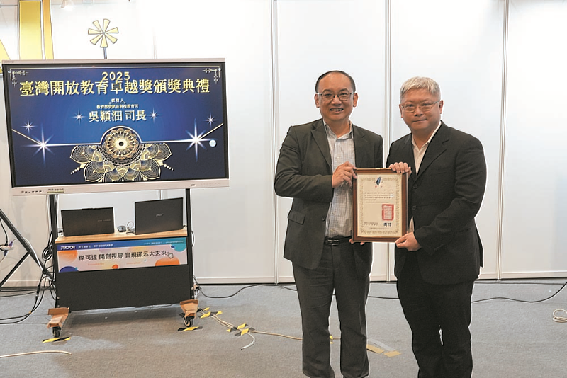 國立臺北商業大學通識教育中心在教學創新領域再傳捷報!林怡安老師長期深耕數位教學與開放教育資源(OER)的應用,日前出席 2025 教育科技展「2025臺灣開放教育卓越獎頒獎典禮」,由教育部資訊及科技教育司吳穎沺司長親自頒授獎狀,林老師今年是以全國夏季學院的「多元文化教育」課程,榮獲社團法人臺灣開放式課程暨教育聯盟頒發「2025年開放教育數位教學資源運用獎個人組優等」殊榮。這已是林老師繼2023年、2024年後,連續第3年獲得臺灣開放教育卓越獎的獎項,顯示其教學設計不僅與時俱進,更精準掌握科技輔助學習的趨勢,為全校師生樹立典範。