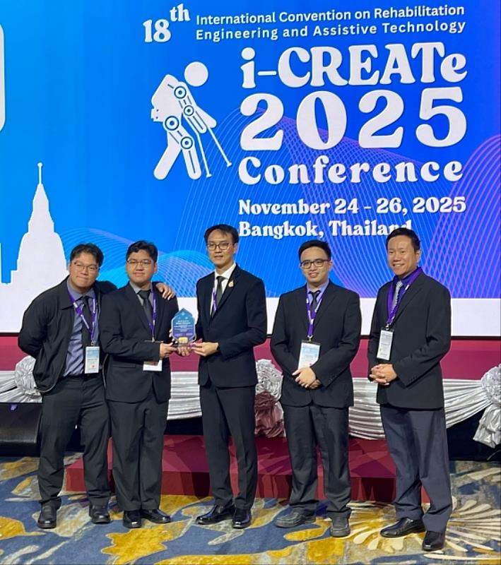 (中央社訊息服務20251203 18:02:09)2025 Global Student Innovation Challenge(gSIC)國際創新挑戰賽於泰國曼谷盛大舉行,來自全球數十國菁英隊伍同場競技。國立勤益科技大學電子工程系由施金波老師指導、代表台灣參賽,今年以創新觸覺互動作品參加「設計組(Design Category)」,最終榮獲佳作(Merit Award)殊榮,再次讓勤益的創意實力登上國際舞台。