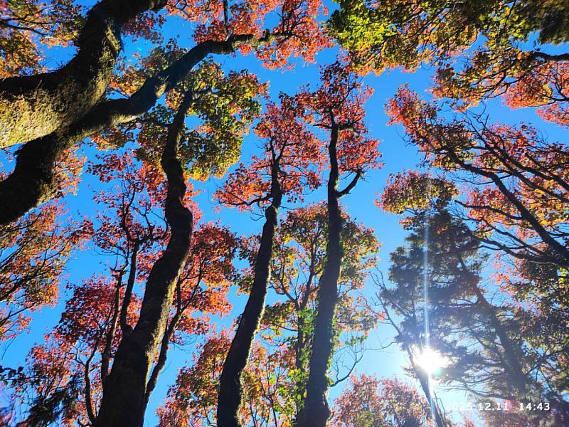 林業保育署臺中分署指出,隨著冷空氣一波波南下,楓葉顏色將持續加深,即日起至耶誕節前後皆為最佳觀賞期,楓紅景觀可望一路延續至年底,正是規劃聖誕假期、年終小旅行的最佳時機。