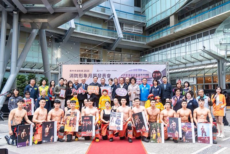 (中央社訊息服務20251218 17:15:25)為提升市民對消防工作的認識與關注,並推廣全民防災教育,新竹市消防局今(18)日上午在新竹巨城Big City購物中心一樓噴水池廣場舉辦「守護城市脈動 點亮平安每一天—2026新竹市消防形象月曆發表」記者會。市長高虹安一同到場對消防人員長期辛勞守護市民安全致上誠摯感謝,並與市民朋友共同見證這場兼具專業與創新的年度發表盛事。