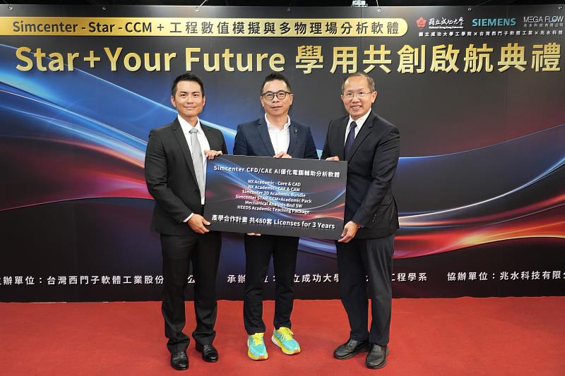 國立成功大學航空太空工程學系18日於航太系館舉辦「Star+ Your Future學用共創啟航」典禮,感謝台灣西門子軟體工業公司透過台灣代理商兆水科技捐贈480套的工程軟體授權予成大工學院。此次捐贈將大幅提升成大工學院在CFD/CAE相關領域的教學與研究能量,展現學院在智慧工程、數位模擬及產學共創上的重要進展。典禮由副校長李永春率領工學院副院長郭振銘、航太系多位主管教師共同出席,向企業表達誠摯感謝。