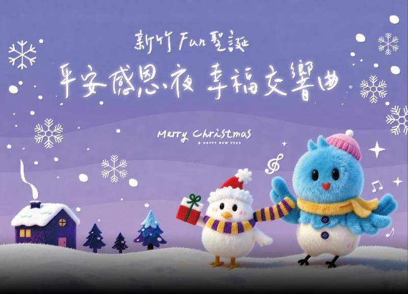 (中央社訊息服務20251219 13:58:17)歲末年終,新竹市政府將於12月24日(三)平安夜在新竹火車站站前廣場舉辦「平安感恩夜・幸福交響曲」活動。活動自下午5時起暖心登場,除了由HSO新竹市立交響樂團帶來1小時的聖誕組曲演奏外,市府也安排「心願卡」頒獎儀式,並於交響樂演出後由基督教、天主教共同帶來平安夜聯合祈福及詩歌演唱,陪伴市民度過最具意義的溫暖夜晚。