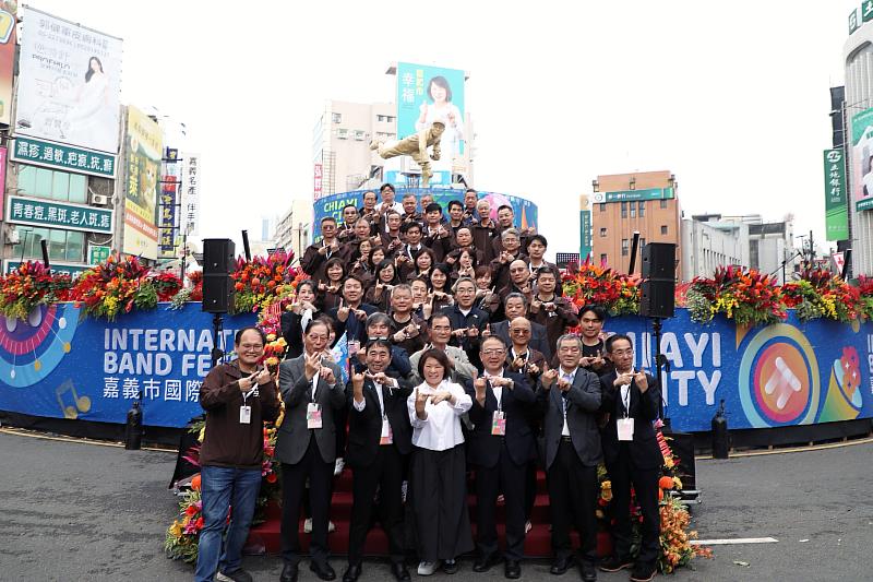(中央社訊息服務20251220 16:34:38)「我們嘉義式,管樂響全市!」2025嘉義市國際管樂節踩街嘉年華,今(20)日下午在嘉義市中央噴水圓環盛大登場。來自國內外共55支管樂與行進團隊齊聚,樂音與掌聲沿著中山路交織回盪,不僅吸引數萬名市民朋友與遊客湧入觀賞,日本宮城縣加美町町長石山敬貴亦率領參訪團跨海前來參與盛會,整座城市瞬時化身為熱鬧音樂舞台。市長黃敏惠強調,管樂踩街嘉年華正是城市安定、文化累積與永續發展的美好總和,幸福樂音正持續在「管樂之都」響起。