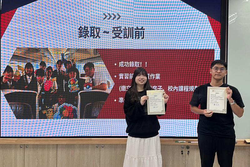 面對客訴處理、航班異動、行李異常與未登機旅客等突發狀況,兩位同學也分享實務中的重要體會「寧可慢,也要準」,並深刻理解作業規範不僅是流程要求,更是保障旅客與工作人員的重要依據。實習過程不僅提升其抗壓能力與溝通應對技巧,也加深對航空產業專業分工與責任結構的認識,對未來職涯方向帶來關鍵影響。