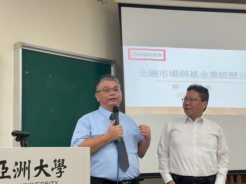 亞洲大學財務金融學系日前邀請摩根投信股份有限公司前執行董事賴建興,以「金融市場與投信業實務」為題,蒞校指導,分享金融時事與指導未來進入金融業的同學應做好充分準備。