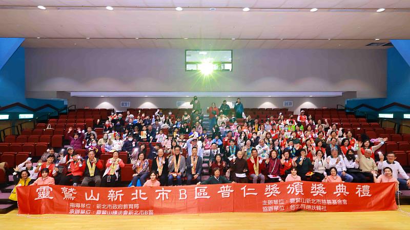 靈鷲山新北市B區第23屆普仁獎頒獎典禮,10日下午在新莊農會4樓大會堂隆重舉行。今年共有81位學子獲獎,孩子們在逆境中展現堅毅品格與生命韌性,如小太陽般照亮自己,也溫暖社會 。普仁獎由開山住持心道法師秉持「關心、愛心、慈悲心」服務社會的生命關懷理念創立,長年深耕品德教育,鼓勵清寒逆境學子以善念翻轉人生 。