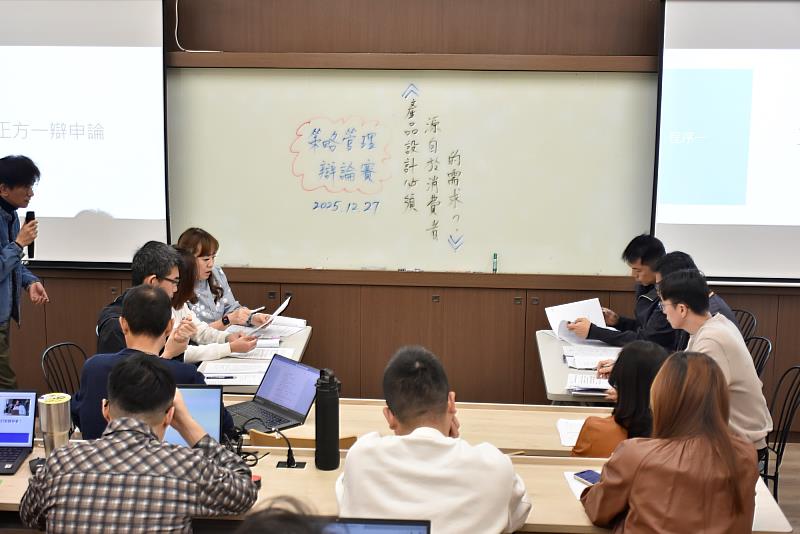 (中央社訊息服務20260112 17:25:13)國立臺南大學管理學院EMBA於114年12月27日在「策略管理」課程中,舉辦首場課堂辯論賽,透過正式賽制與實務導向議題,引導同學將管理理論轉化為即時思辨與溝通實作。本次辯論以「產品設計是否必須源自於消費者需求?」為題,由管理學院院長劉子歆主持,展現南大EMBA課程重視策略思考與高階管理能力養成的教學特色。