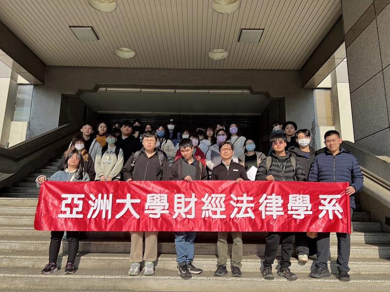 (中央社訊息服務20260114 12:19:19)為強化學生對法律實務與公共事務之理解,亞洲大學財經法律學系於115年1月5日辦理校外參訪活動,由莊晏詞老師、楊增暐老師、張智聖老師帶領學生進行一日參訪行程,透過實地走訪司法機關,協助學生連結課堂理論與實務運作,深化學習成效。